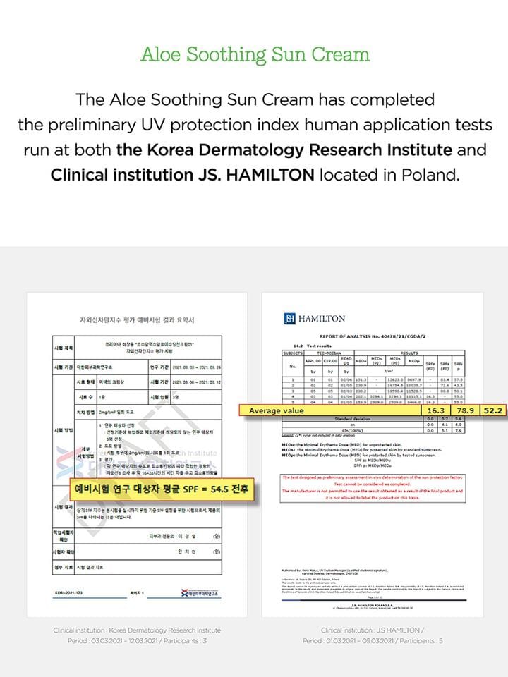 Moisturising sunscreen with SPF50+ PA+++ and aloe vera for UV protection and soothing care.