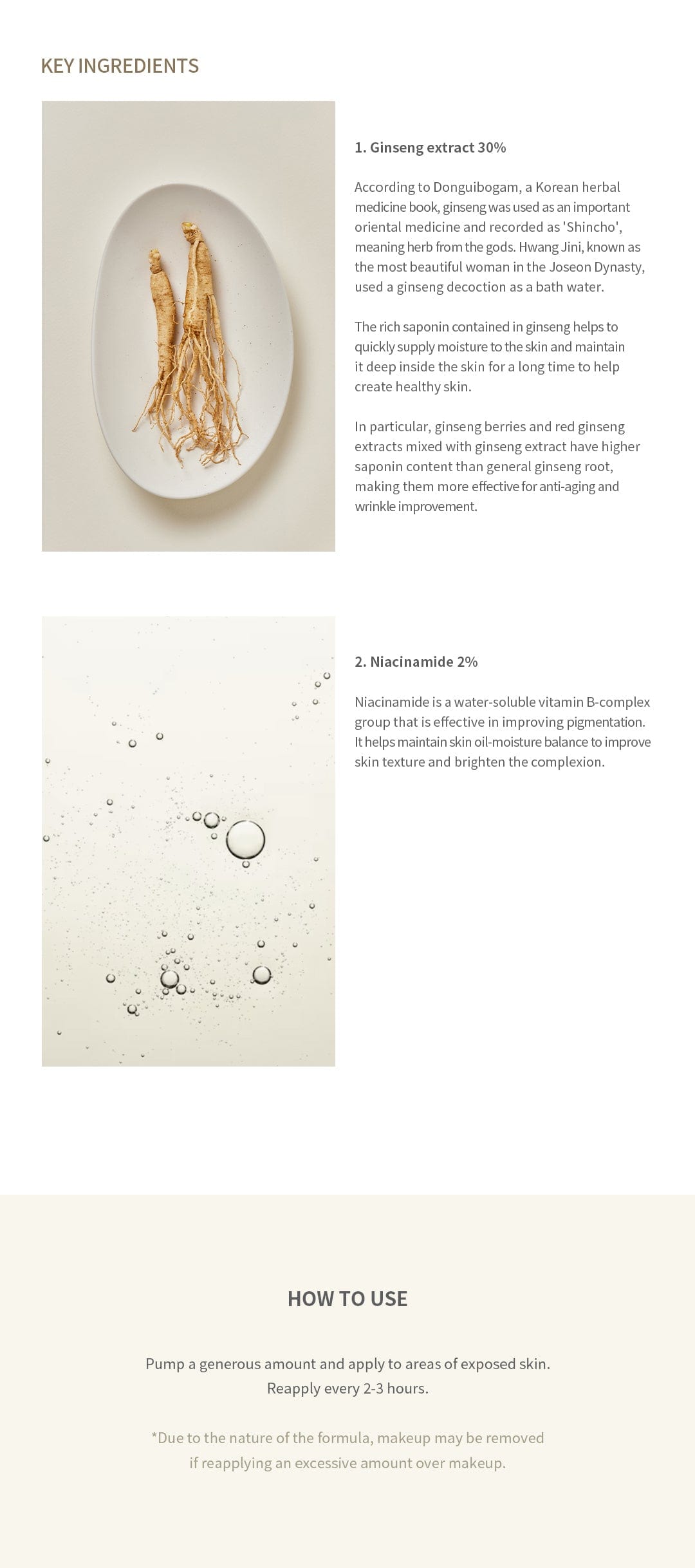 Sunscreen, but make it skincare ☀️🌿 This lightweight serum-type sun care combines ginseng extract to nourish and niacinamide to brighten, all while giving strong SPF50+ PA++++ protection. It glides on like a hydrating serum, absorbs fast, and leaves zero white cast — so your skin feels fresh, dewy, and protected every day.