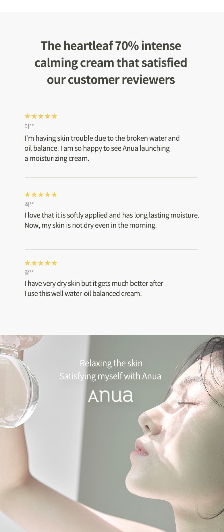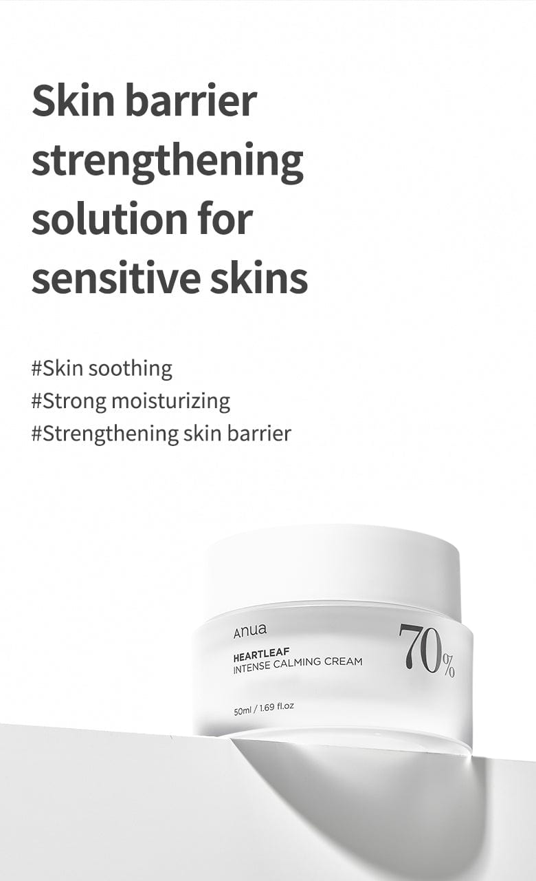 Soothe, hydrate, and protect sensitive skin with Anua Heartleaf 70% Intense Calming Cream. Infused with 70% heartleaf extract (Houttuynia cordata), this rich yet gentle cream helps calm irritation, reduce redness, and strengthen the skin’s moisture barrier. Botanical ingredients work together to lock in hydration and restore skin comfort, leaving your complexion soft, supple, and balanced.