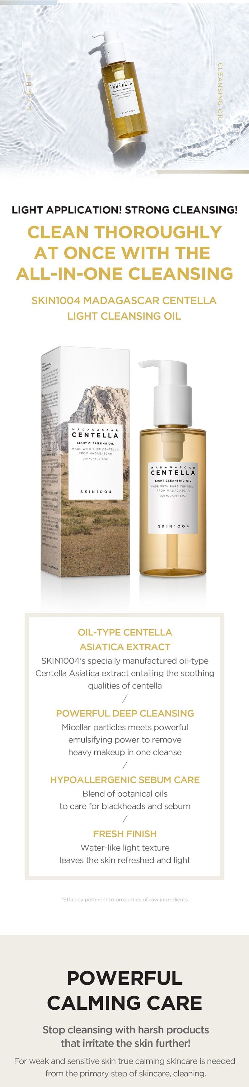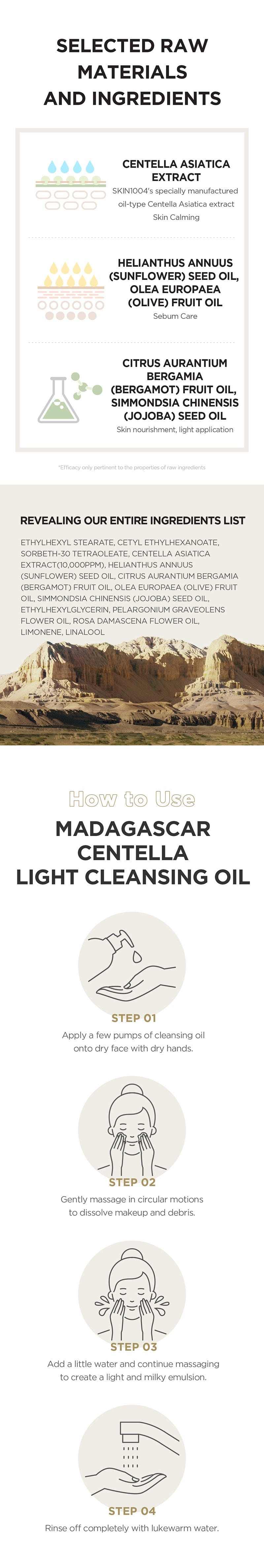 Effortlessly dissolve makeup, sunscreen, and impurities with SKIN1004 Madagascar Centella Light Cleansing Oil. Infused with Centella Asiatica extract from Madagascar, it helps soothe irritation and protect the skin barrier while effectively cleansing without residue.