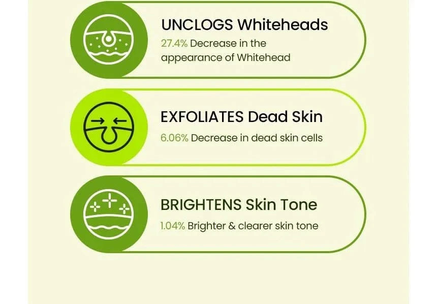 Gentle Exfoliation: Smooths rough texture and unclogs pores without irritation.