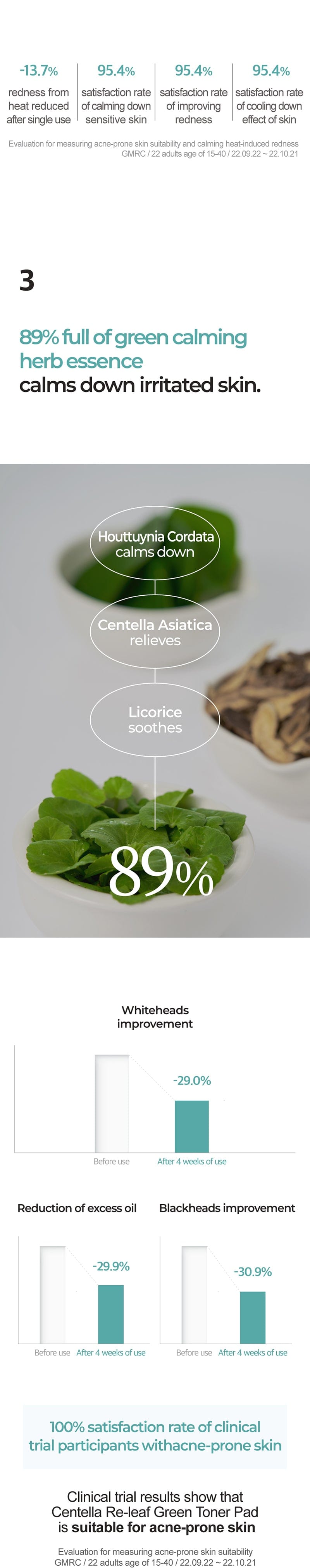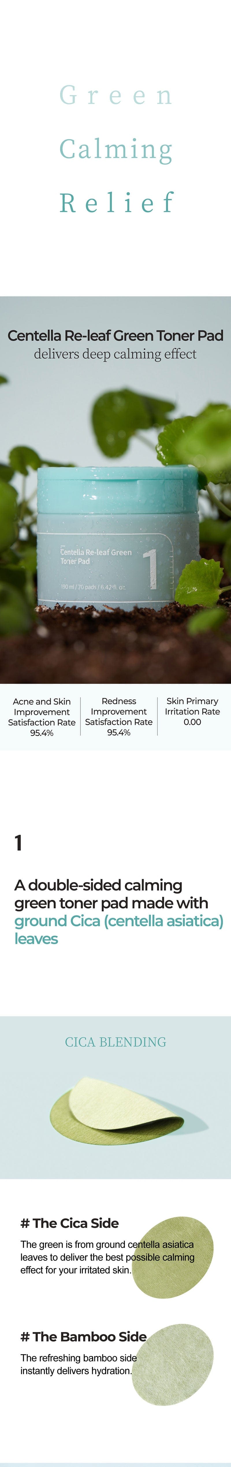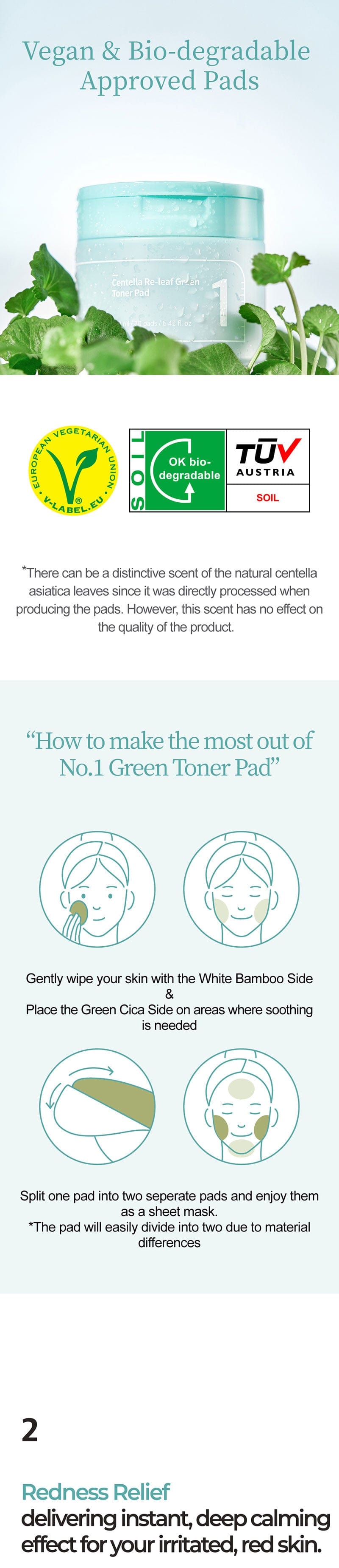 Calm and refresh your skin with Numbuzin No.1 Centella Re-leaf Green Toner Pad, soaked in soothing Centella Asiatica extract to reduce redness and strengthen the skin barrier. Each ultra-soft, eco-friendly pad is infused with a gentle blend of tea tree leaf water and heartleaf extract to help control excess oil, relieve irritation, and keep skin balanced.