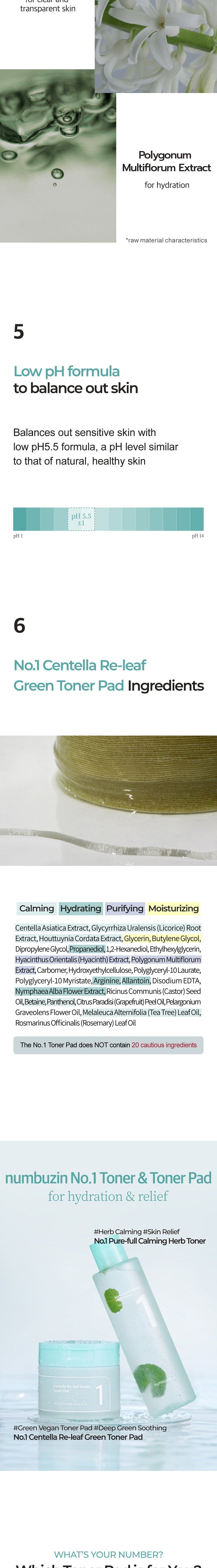 Numbuzin No.1 Centella Re-leaf Green Toner Pad 190ml (70pads)