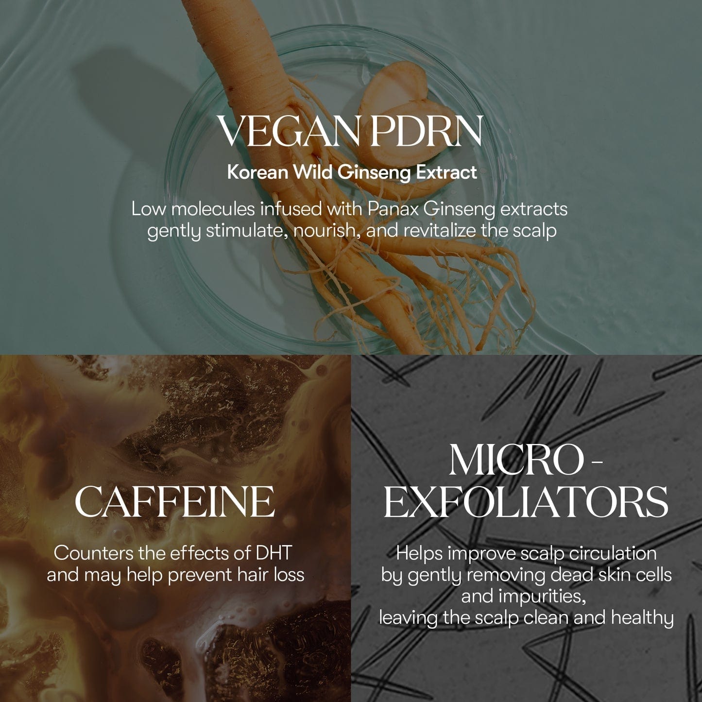 Infused with Plant-based Vegan PDRN to deeply nourish and awaken vitality for a healthy scalp.