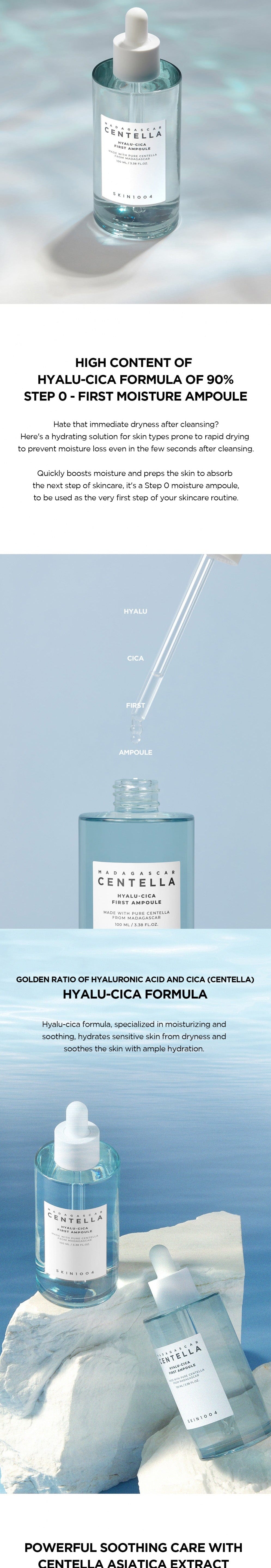 Replenish and soothe your skin from the very first step with SKIN1004 Hyalu-Cica First Ampoule. This hydrating pre-serum combines hyaluronic acid for deep moisture and Centella Asiatica extract from Madagascar to calm irritation and strengthen the skin barrier.