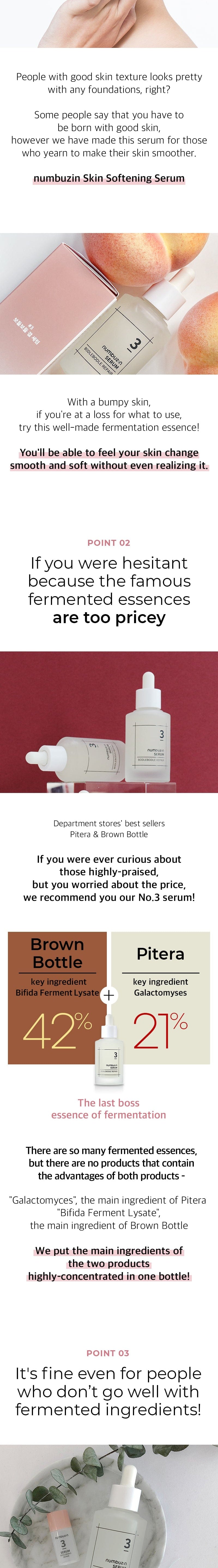 Achieve smoother, healthier-looking skin with Numbuzin No.3 Skin Softening Serum. Enriched with fermented ingredients such as bifida ferment lysate and galactomyces ferment filtrate, this serum helps refine skin texture, improve elasticity, and boost radiance.