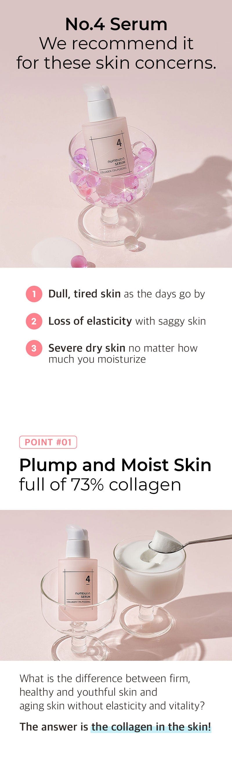 Firm, plump, and revitalize your skin with Numbuzin No.4 Collagen 73% Pudding Serum. Packed with 73% marine collagen extract, this bouncy, pudding-like serum delivers intense hydration and improves skin elasticity for a smoother, more youthful look.