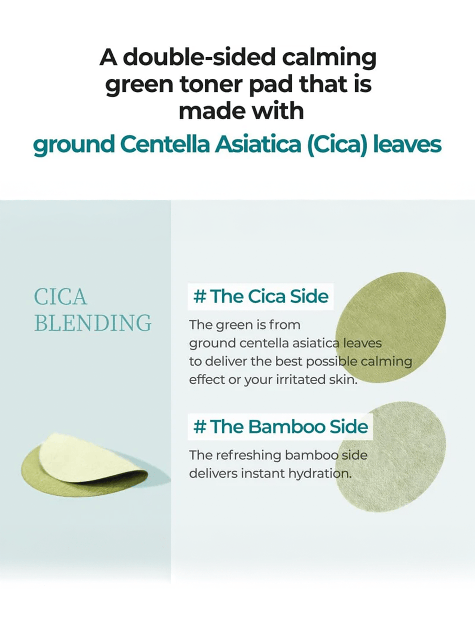 Calm and refresh your skin with Numbuzin No.1 Centella Re-leaf Green Toner Pad, soaked in soothing Centella Asiatica extract to reduce redness and strengthen the skin barrier. Each ultra-soft, eco-friendly pad is infused with a gentle blend of tea tree leaf water and heartleaf extract to help control excess oil, relieve irritation, and keep skin balanced.