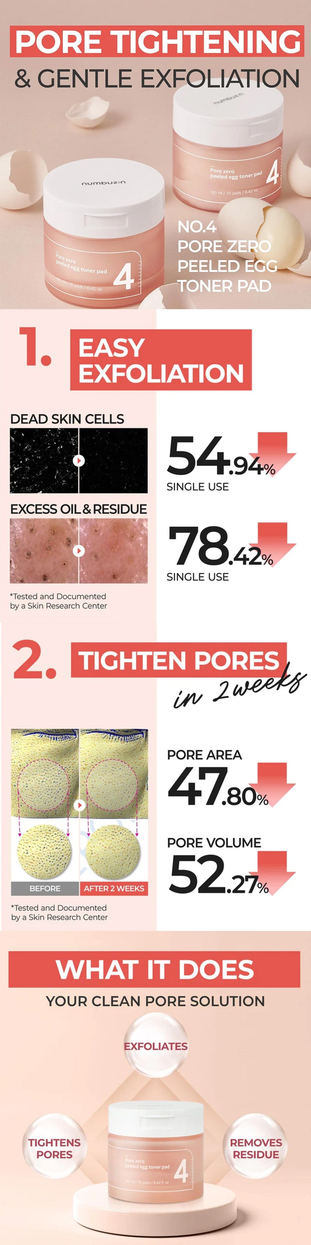 Numbuzin No.4 Pore Zero Peeled Egg Toner Pad 190ml (70 pads)